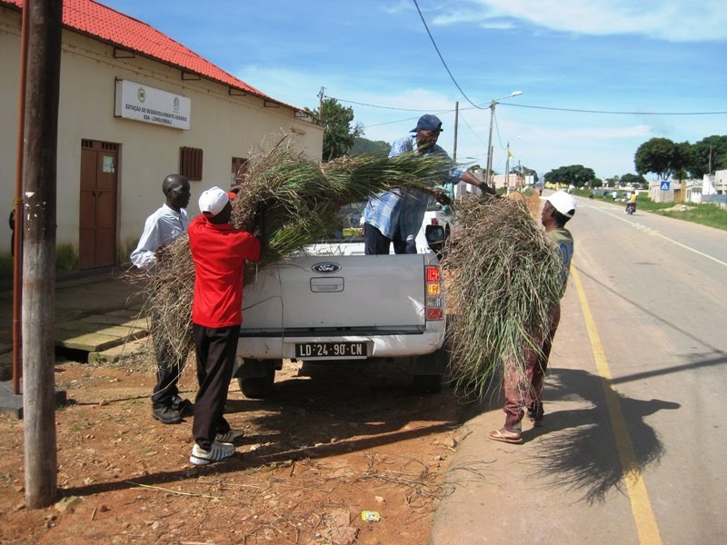 Returning to the Cooperative Extension Office we started loading the green and the brown matter into the truck. Most of the members showed up dressed in work clothes with machetes, shovels and hoes. We had tons literally of materials and so many people that we had to take relays of two pickups to the site, near a stream 3 kilometers away.The Cooperativa members, upon a review, remembered everything and we started with the thickest stalks of the brown materials first, then a thin layer of manure and a little lime to raise the PH. The soil in the valley is very similar to the Foothills of Western North Carolina: red clay: and it is very acidic. Then we watered with a watering can and followed with as layer of green material. Layer upon layer we built up and once they got the hang of it we finished with the best built, prettiest compost pile that I've ever seen. I have to admit that we were all very proud of it.The composteiria is to be maintained. They know that, since it is layered correctly, in a week, if they cannot feel heat when they stick their hands in the pile, it can only be because it is too wet, too dry, or it doesn't have enough air. They know how remedy each eventuality: don't water if too wet; water it if its too dry; and turn it if its too compressed and needs air. We went over and over both the symptoms and the cures and I, as well as the CNFA Farmer to Farmer staff, firmly believe that these camponez of Londuimbali have been changed and will be no longer dependent upon chemicals.